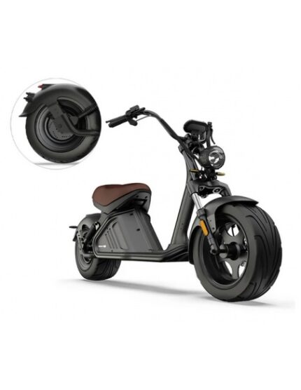Puissance et motorisation : Disponible en deux versions – 2000W (autonomie 110 km) et 4000W (vitesse maximale 80 km/h débridée, autonomie 80 km). Design premium : Inspiré des motos électriques avec des fourches dorées et des coloris noir ou rouge vin. Capacité et robustesse : Supporte une charge maximale de 200 kg avec des pneus en TNT/alliage d’aluminium QS (130/70-12). Batterie amovible : Batterie lithium facile à recharger en 10 heures, offrant praticité et durabilité. Homologation : Conforme aux normes européennes (COC) et immatriculable. Sécurité accrue : Système de freinage renforcé sur la version 4000W et stabilité optimale grâce à son design ergonomique. Garantie : 24 mois, avec un service après-vente fiable. Le Citycoco M8S allie style, performance et écologie, faisant de lui un choix idéal pour une mobilité moderne et responsable.