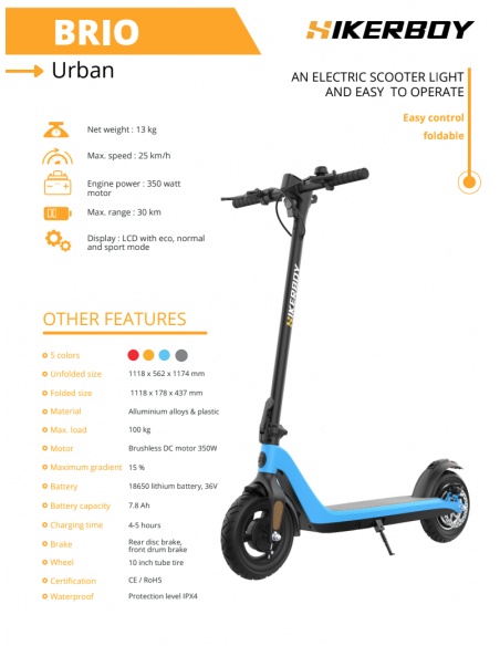 La trottinette électrique Brio de hikerboys sera parfait pour vos déplacement urbains.