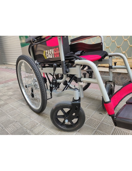De plus, l’Easy Go peut être piloté par l’utilisateur ou son accompagnateur grâce à une commande mobile qui peut se situer n’importe où dans le véhicule. Deux moteurs et une batterie à votre image Chaque roue pneumatique grand format est propulsée par des moteurs séparés d’une puissance combinée de 500W avec une fonction de frein électrique qui immobilise l’Easy Go dès que l’utilisateur cesse d’accélérer ; prévenir les renversements et autres frayeurs sur le chemin. De plus, la batterie lithium-ion est fabriquée en Espagne et vous permet de choisir entre 4 options de capacité, selon les besoins de chaque utilisateur.