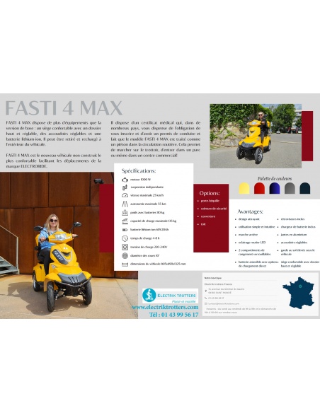 Le FASTI 4 MAX possède un certificat médical qui, vous dispense de l’obligation d’un permis de conduire et considère le Fasti 4 max comme un piéton dans la circulation routière.