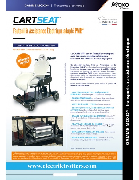 Offrez-vous ou à vos proches une solution pratique, confortable et novatrice pour tous les déplacements. Le CARTSEAT signé MOXO, est plus qu’un fauteuil électrique : c’est une nouvelle façon de vivre la mobilité.