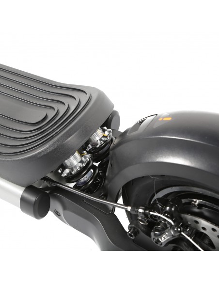 Batterie : Lithium 48V 15Ah Moteur : 1000 watts Vitesse : 45km/h Autonomie : 60km Suspension : AV + AR