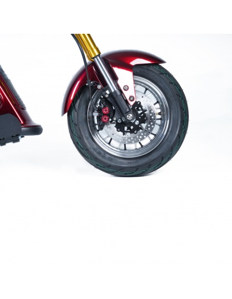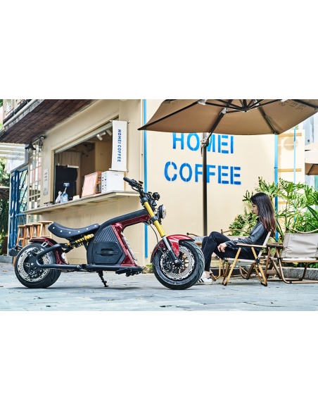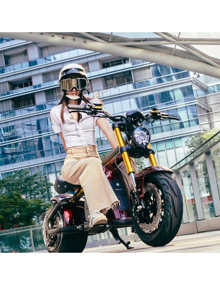 - Style captivant : Inspiré des motos électriques, son design moderne et ses fourches dorées ajoutent une touche de raffinement. Disponible en noir intemporel ou rouge vin séduisant, ce scooter saura refléter votre personnalité.