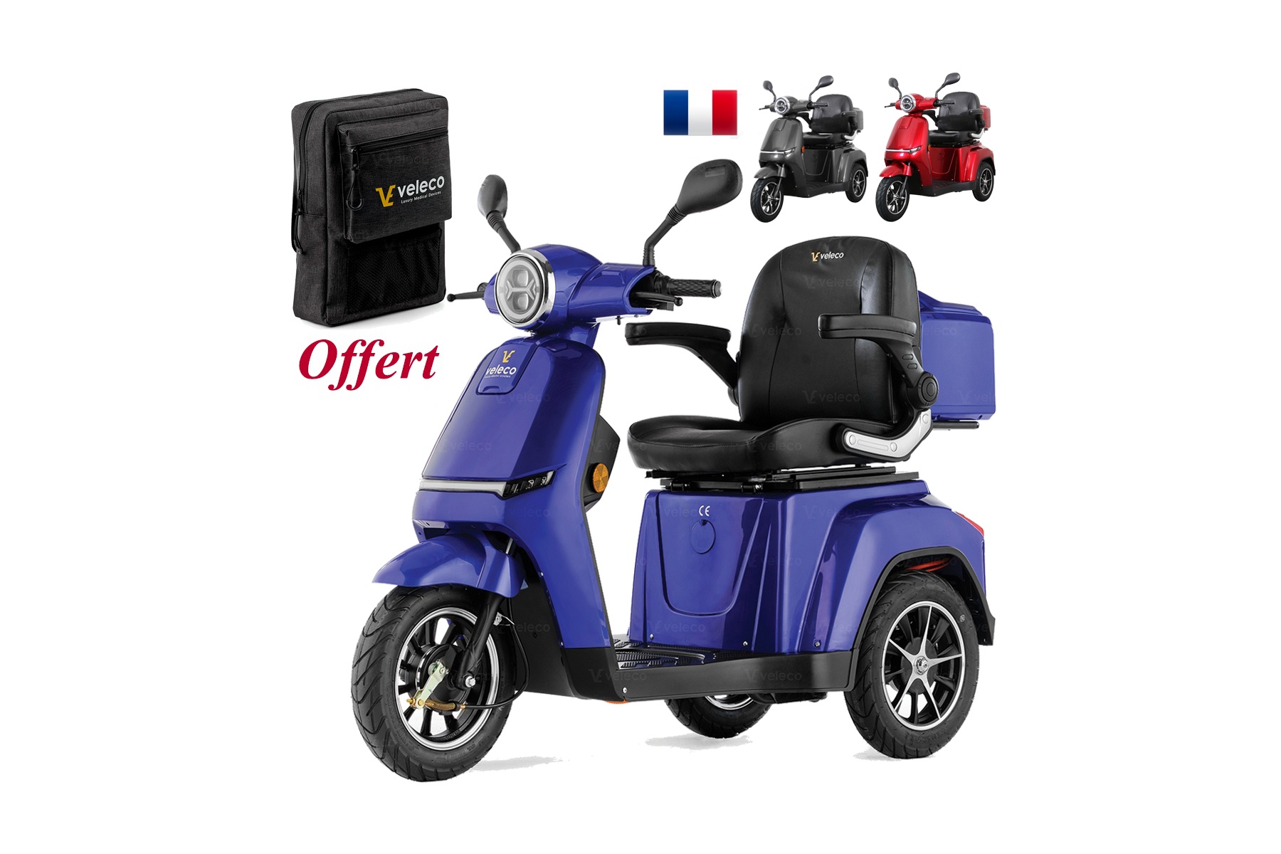 Scooter électrique 3 roues pour PMR personnes à mobilité réduite et sénior Veleco ZT63