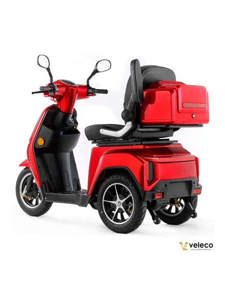 Scooter électrique 3 roues ZT-15 - Veleco Le ZT-15 de Veleco est le scooter électrique parfait pour les personnes à mobilité réduite, les seniors et tous ceux qui recherchent un moyen de transport confortable, sécurisé et écologique. Doté d'une grande autonomie et d'un design ergonomique, il offre une mobilité simplifiée et un confort de conduite optimal. Moteur : 900 W (parfait pour gravir des pentes abrupte) Vitesse max : 3 à 12 km/h (réglable) Autonomie : jusqu'à 60 km Poids supporté : 160 kg Dimensions : 165 x 69 x 108 cm Type de batterie : Plomb (4x 20 Ah, 12 V) Garantie : 3 ans Le ZT-15 est livré prêt à l'emploi pour vous offrir une expérience de conduite sans souci dès la première utilisation.
