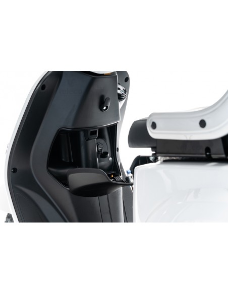 Le scooter dispose d’un espace de rangement verrouillable sous le siège et le coffre à bagages, ce qui en fait le compagnon idéal pour faire les courses.