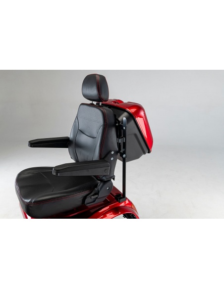 Ce scooter rouge avec siège et dossier est le compagnon idéal pour vos balades en ville. D’un design élégant et
