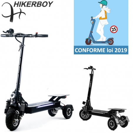 La trottinette électrique à 3 roues de la marque Suisse Hikerboys sera parfaite pour les utilisateurs en demande de stabilité pendant leur trajet et même à l’arrêt (La trottinette tient debout sans béquille). Avec son autonomie étonnante de 40 km et ses pneus tout terrain, vous aurez entre vos mains, un engin confortable qui affiche de belles caractéristiques pour des sensations optimales sur tout type de terrain. Possibilité d’ajouter un siège disponible en option. Cette trottinette est faite aussi bien pour les PMR (situation de handicap, sclérose en plaque, personnes ayant peu d’équilibre, personnes ne pouvant plus faire de vélo et personnes ayant du mal à marcher et à se déplacer) mais aussi pour les personnes aimant le cross.