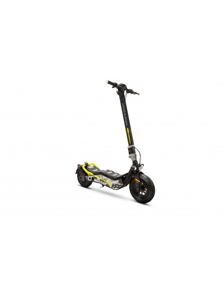 Trottinette électrique cross tout terrain en 2000 watts (rare sur le marché) et 48V. Avec la trottinette Aspide 2000, tous les types de chemins ne seront pas un obstacle pour vous. Avec son siège détachable, vous pourrez la conduire debout ou assis. 2000 watts - batterie amovible lithium 48V12 ah Autonomie 30 km Vitesse : 40 km/h Pneus de 14 " Poids de la trottinette : 34 kg Poids maximal de l'utilisateur : 150 kg