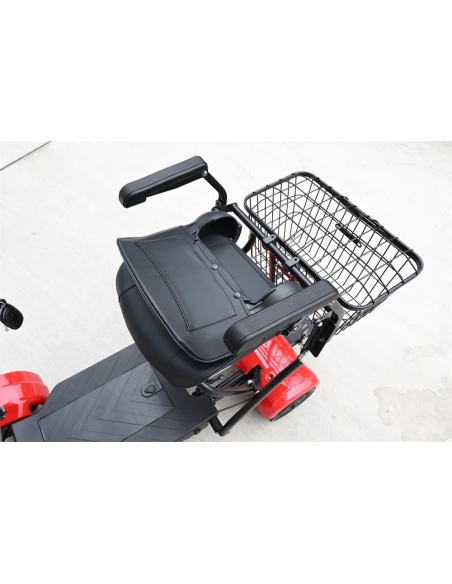 Ce modèle de scooter met également l’accent sur le confort de l’utilisateur. Il est équipé d’un siège avec dossier ergonomique et des accoudoirs réglables, parfaits pour offrir un soutien optimal pendant les trajets prolongés. Le confort est un facteur essentiel, notamment pour les personnes âgées qui peuvent passer beaucoup de temps sur leur scooter lors de leurs déplacements quotidiens. Le design de ce scooter permet de soulager la pression sur le dos et les bras, favorisant une posture détendue et confortable.