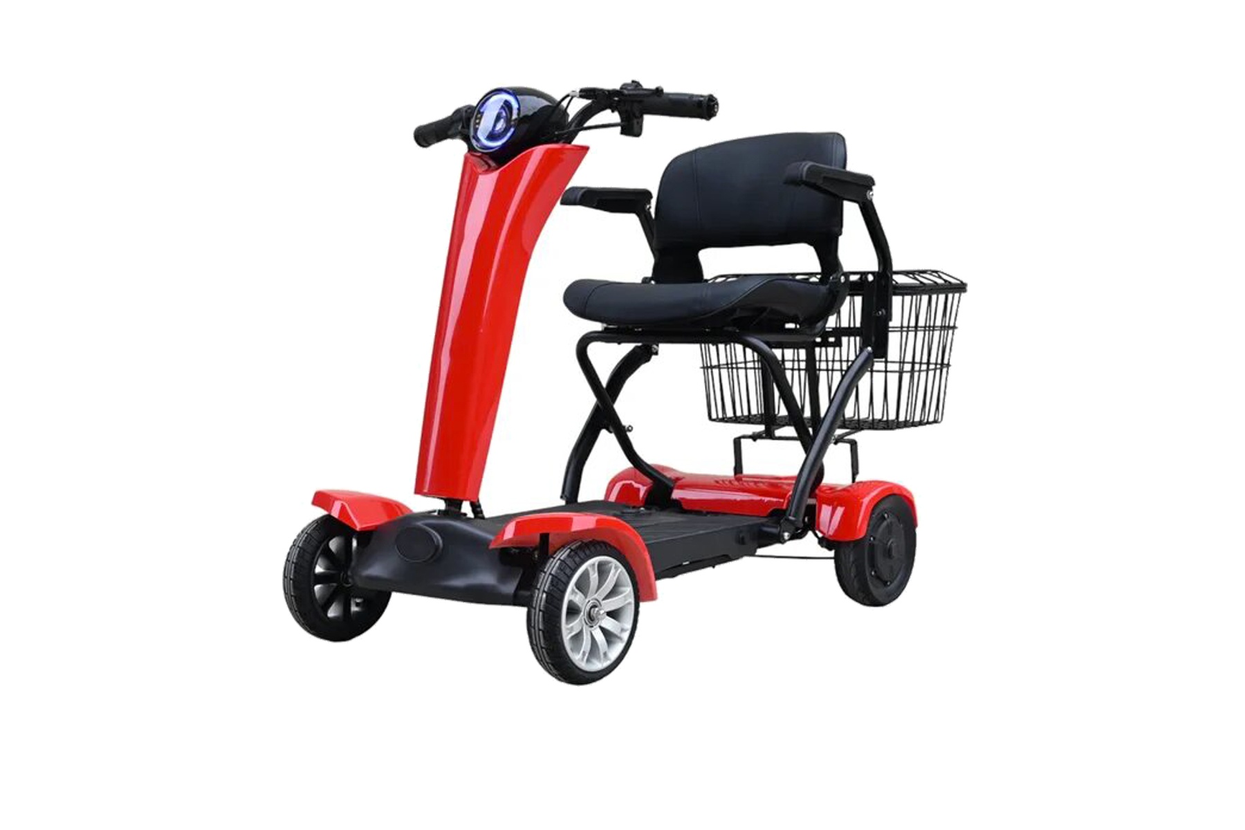 L’un des points les plus intéressants de ce scooter électrique à 4 roues est sa capacité à se plier et se déplier simplement en appuyant sur un bouton, via une télécommande intuitive. Ce système est conçu pour les utilisateurs ayant des limitations physiques, qui ne peuvent pas manipuler les scooters de manière traditionnelle. Il suffit d’appuyer sur la télécommande, et en quelques secondes, le scooter se plie ou se déplie automatiquement, sans effort. Cette fonctionnalité est un véritable gain d’autonomie pour les personnes âgées ou en situation de handicap, qui n’ont plus besoin de demander l’aide d’une autre personne pour ranger ou utiliser leur scooter.
